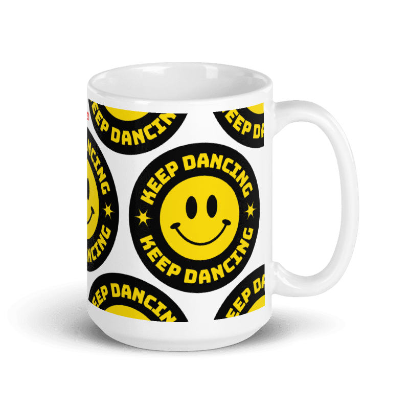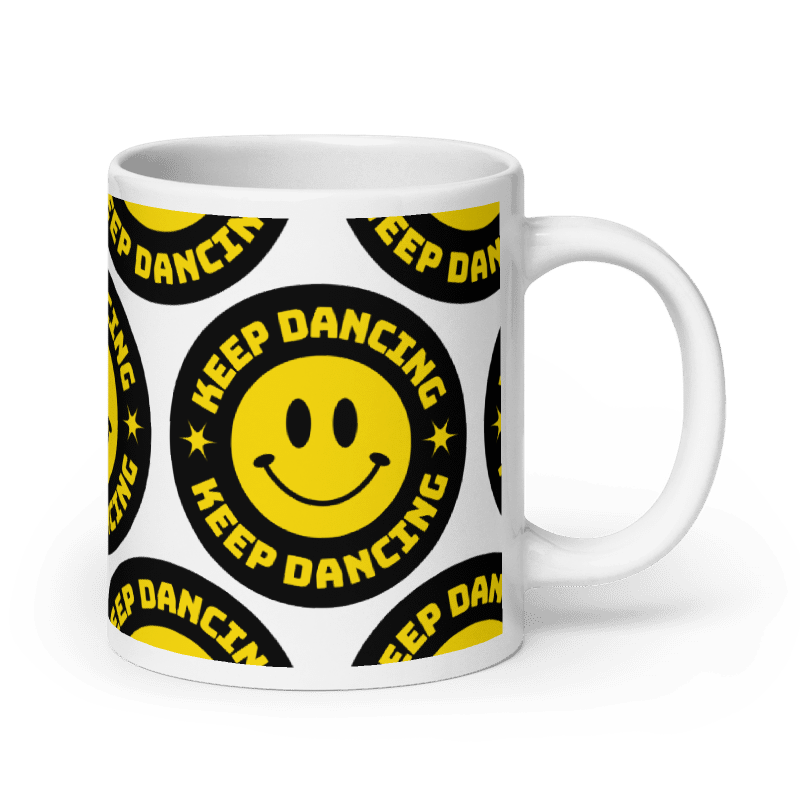 Whether you're drinking your morning coffee, evening tea, or something in between - this Keep Dancing White Mug's for you! It's sturdy and glossy with a vivid print that'll withstand the microwave and dishwasher.
