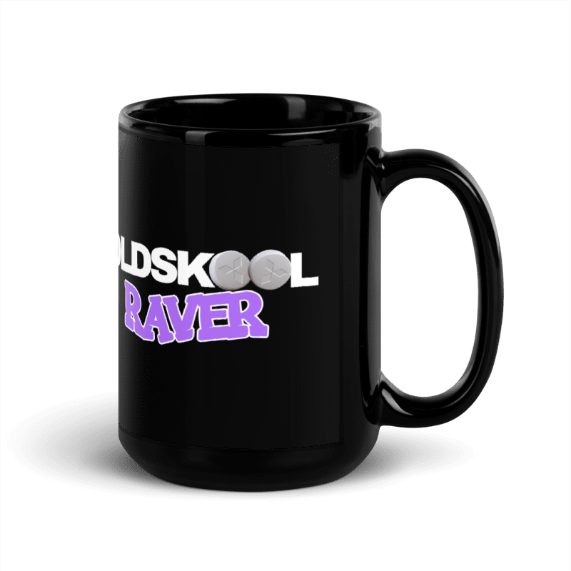 Whether you're drinking your morning coffee, evening tea, or something in between - this Oldskool Raver Black Mug's for you! It's sturdy and glossy with a vivid print that'll withstand the microwave and dishwasher.