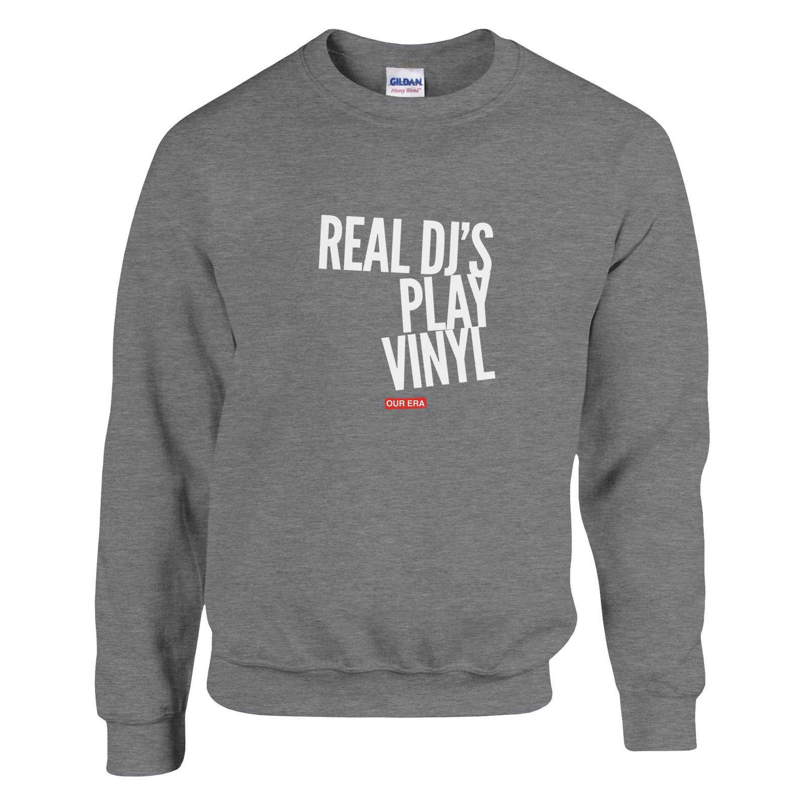 The classic Real DJs Play Vinyl Sweatshirt from Our Era.